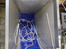 The machine is made of stainless steel and is suitable for operation in industrial lines (food, pharmaceutical, and technical sectors).