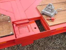 This transporter is suitable for the safe transport of 20 ft. sea containers and is equipped with removable twistlocks. Also available for hook, cable, or chain systems, with or without a floor made of wood or chequer plate.