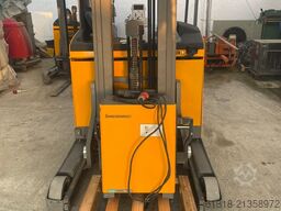 Jungheinrich ETV 214 E GE 115 – 455 DZ, used reach truck; YOM: 2018; S/N: 91128553 running hours: only 1.213; engine type electric with 6,0 kW; capacity: 1.400 kg; mast type: triplex; Lift Height: 4.550 mm; fork length 1150 mm; own weight without battery 2.105; front tyres: cushion, size 1x BA; rear tyres condition: 65%; transmission: three-phase current; battery type: 2018, 48V 4EPZS 620, capacity C5: 620 Ah; battery weight 935 kg, with 24 cells and acid volume of 153 litre; overall weight with battery: 3.040 kg, type of control: standard joystick